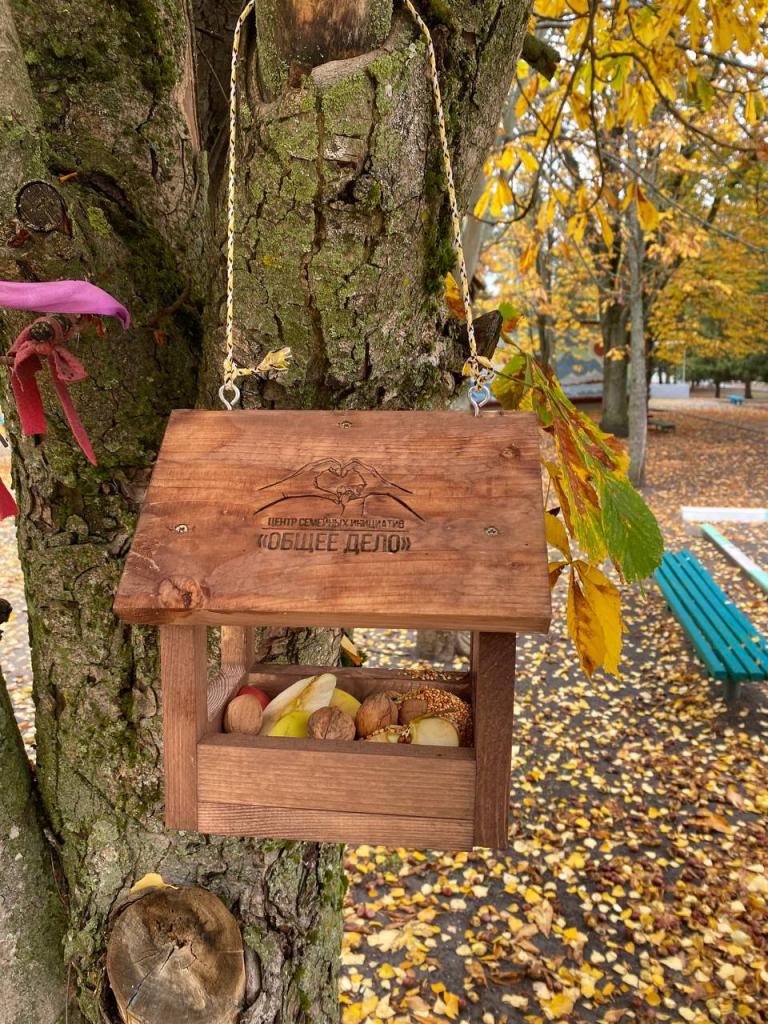 У нас уже сложилась традиция – проводить многосемейный субботник на территории лагеря, где наши дети отдыхают летом. Для нас важно внести свой вклад в благоустройство этого места. Сегодня мы сажали растения и вешали кормушки для птиц и белок. Эти кормушки дети сделали вместе с папами.